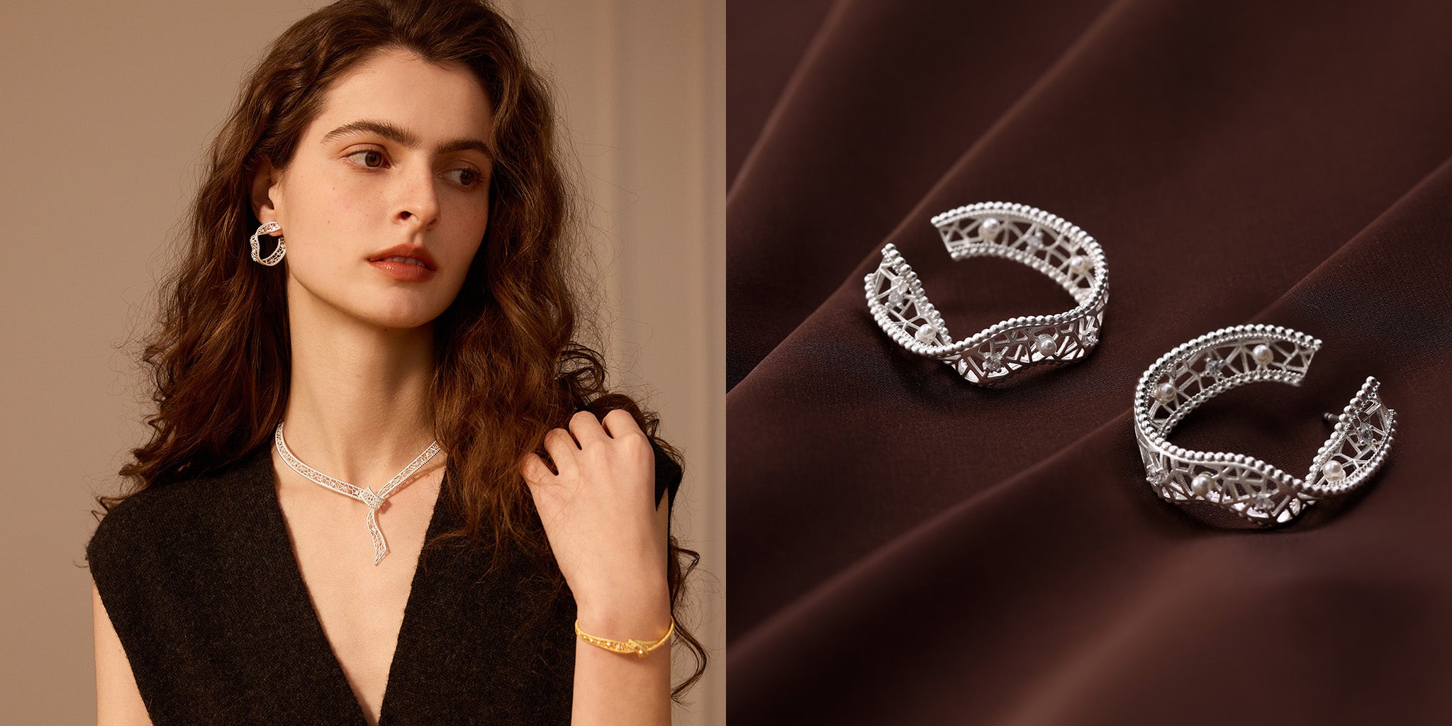 弊社は最高品質の素材を厳選し、ジュエリーを製作しています。私たちの製品は、どんな瞬間でも快適さと自信を与えてくれます。華やかな特別な場面でも、日常のさりげないシーンでも、あらゆるライフスタイルの一部として、完璧なアクセサリーをお届けします。