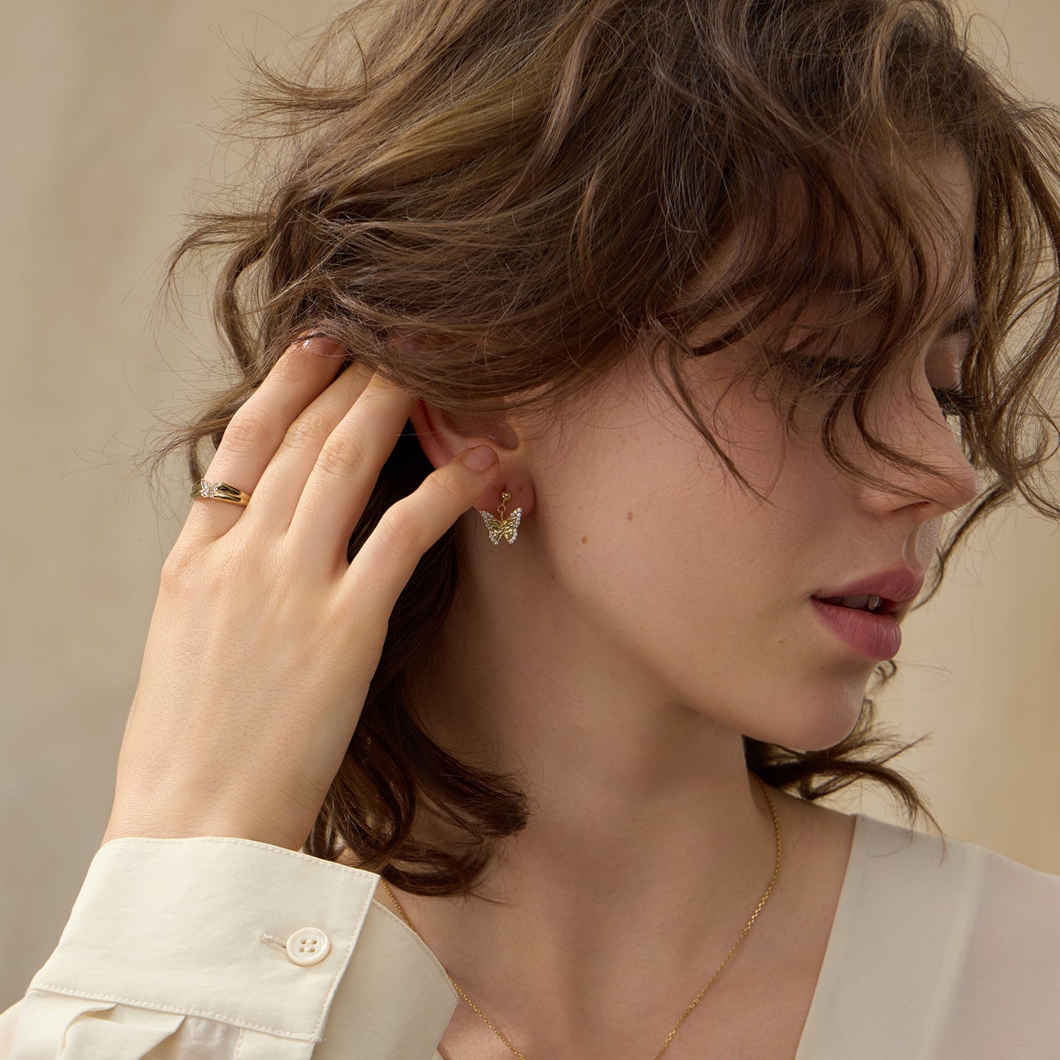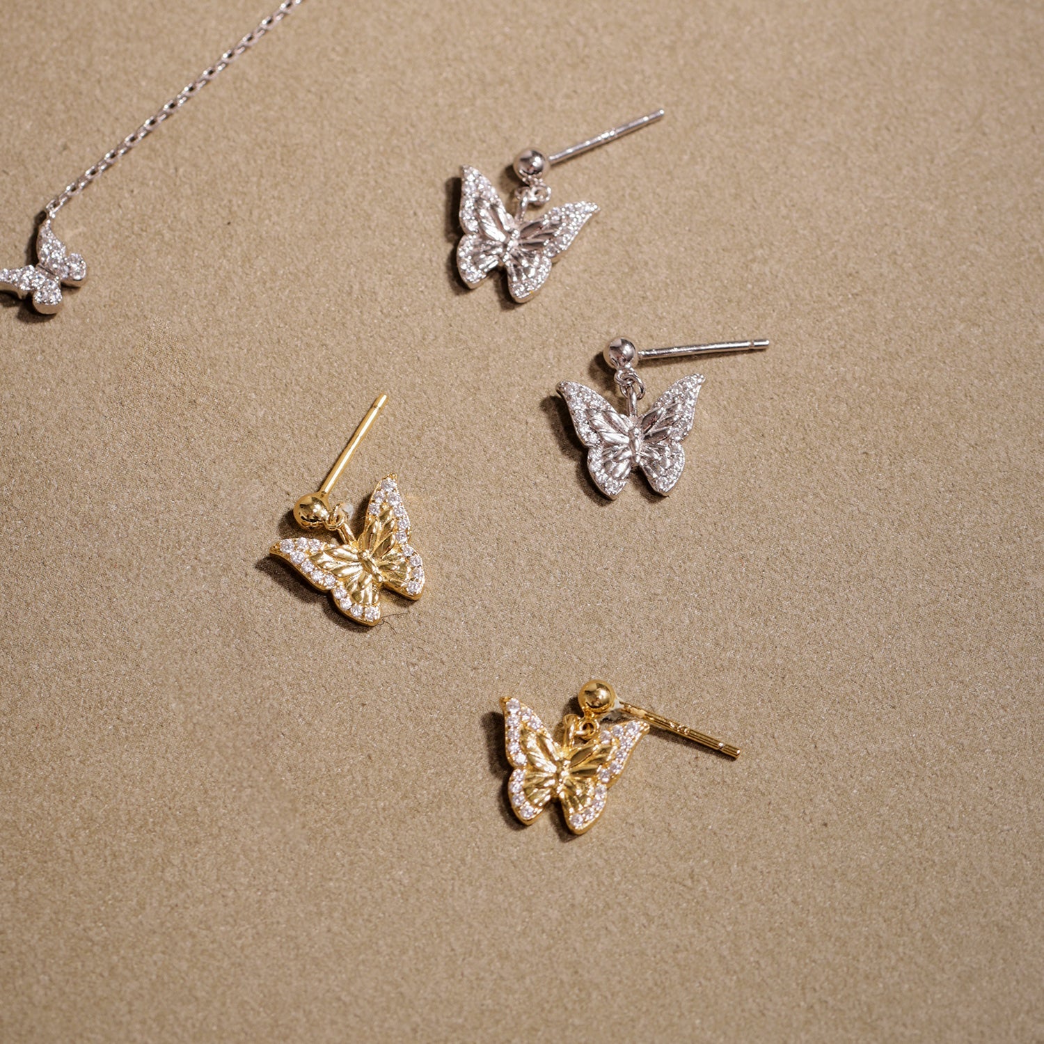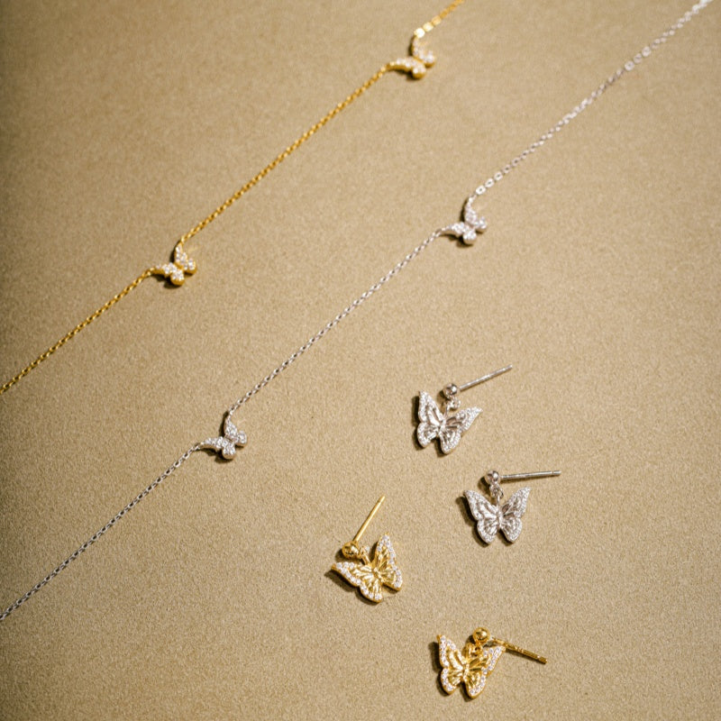 繊細な羽根の優美さ、鮮やかな色彩、そして精巧な模様が愛される蝶の美しさをインスピレー ションに生まれたペンダントネックレス。ゴールドとシルバーの2色展開で、蝶のデザインには煌 めくCZストーンをあしらいました。バタフライコレクションの他のアイテムと組み合わせて、よ り一層の魅力をお楽しみください。