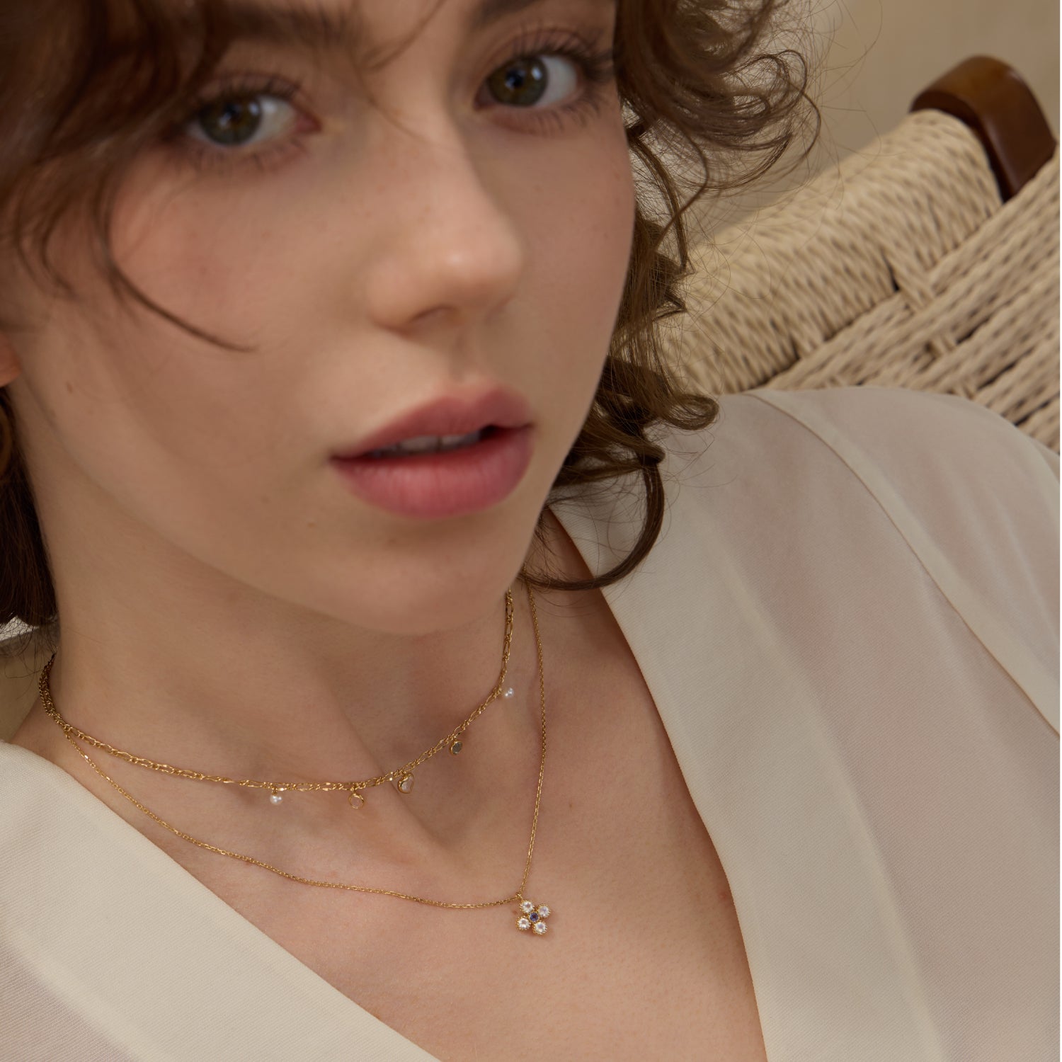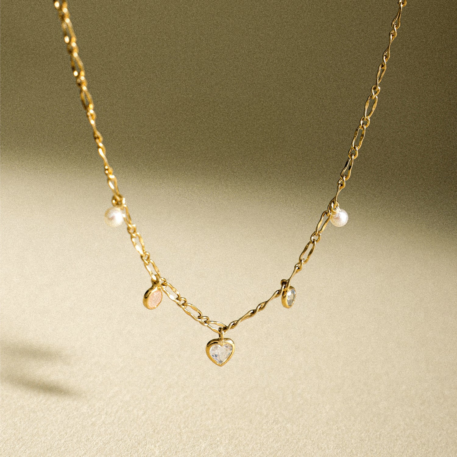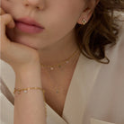 精巧な宝石チャームがあしらわれたこのネックレスは、日常使いにぴったりな重ねづけアイテムです。エレガントでありながら汎用性が高く、どんな装いにも輝きを添えます。お揃いのブレスレットと合わせれば、さらに洗練された印象を与えます。