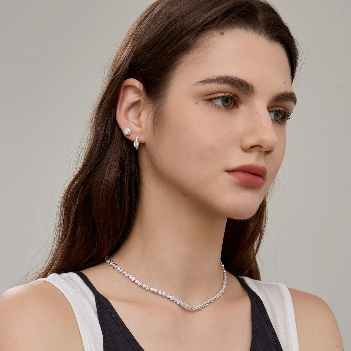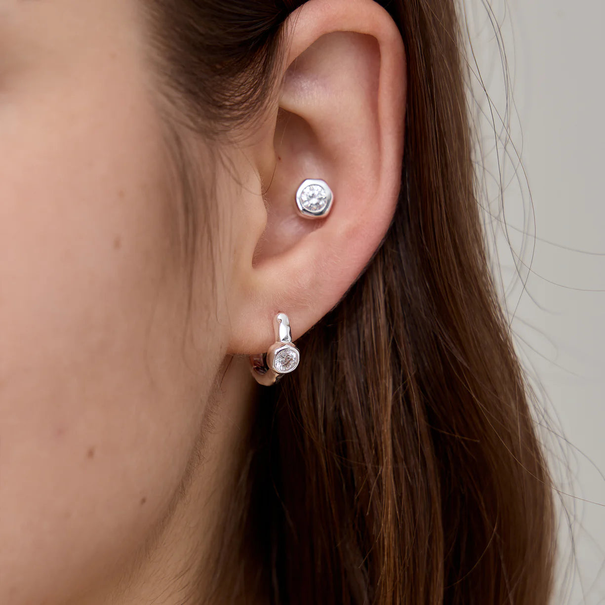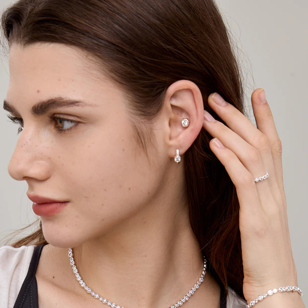 フローラモチーフのイヤージャケット付きフープイヤリング