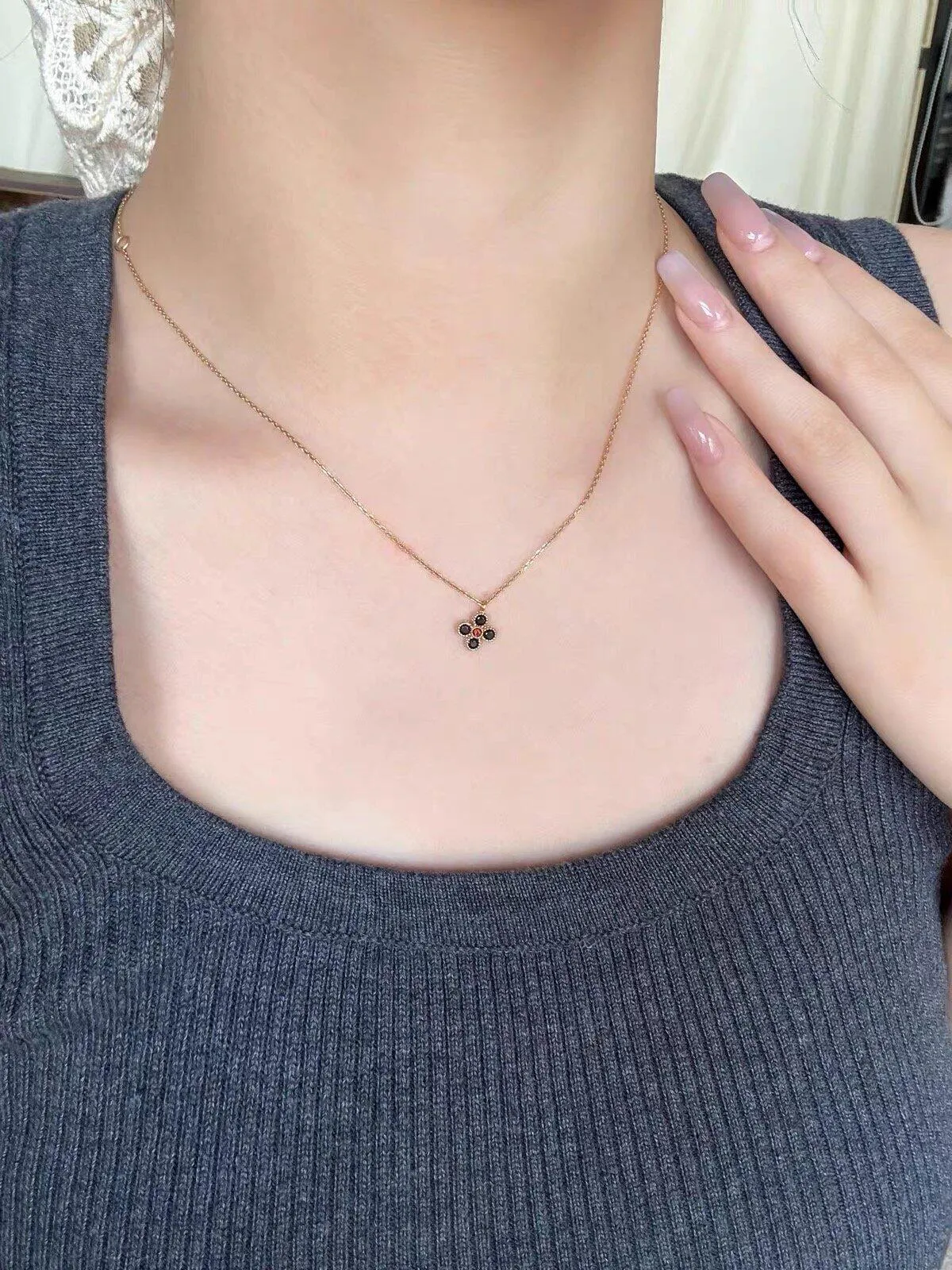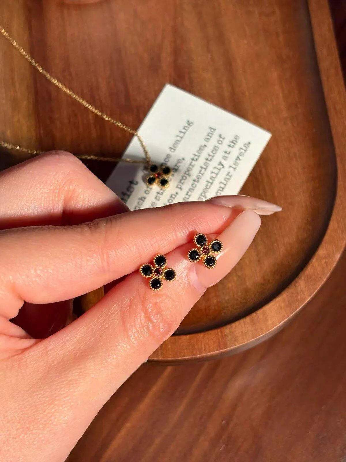四つ葉のクローバー ブラックオニキス&ガーネット ネックレス