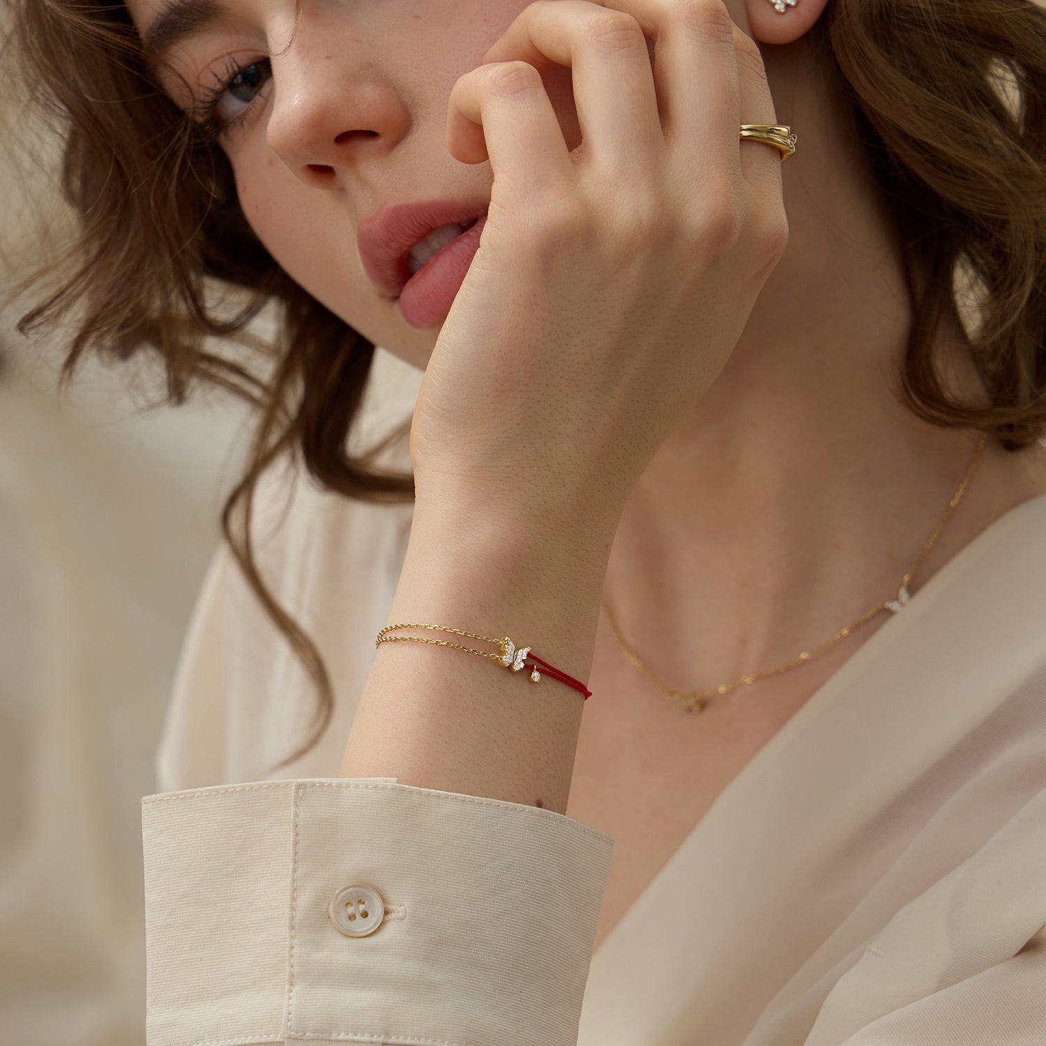 ブレスレット 蝶 赤い糸