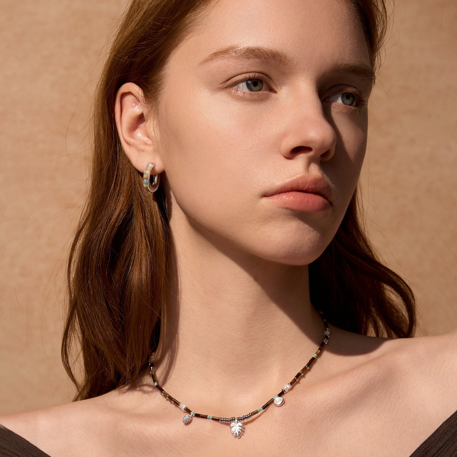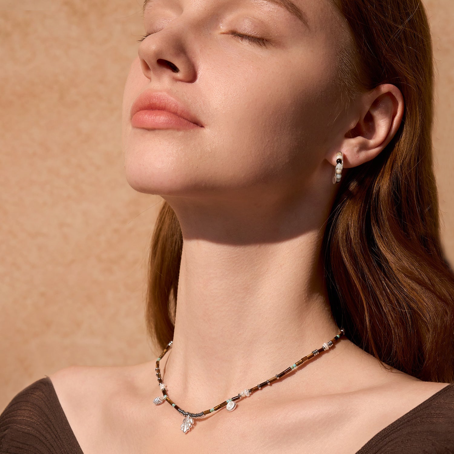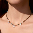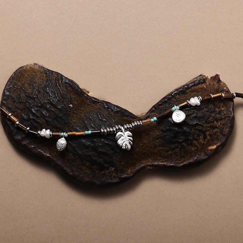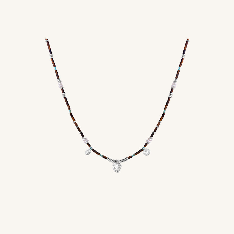 このネックレスはタイガーアイビーズ、パール、キュービックジルコニアを特徴としています。繊細な葉のチャームが自然の活力を添えます。単体でクラシックな装いに、またはリトルフォレストコレクションの他のアイテムと組み合わせてフルコーディネートをお楽しみください。