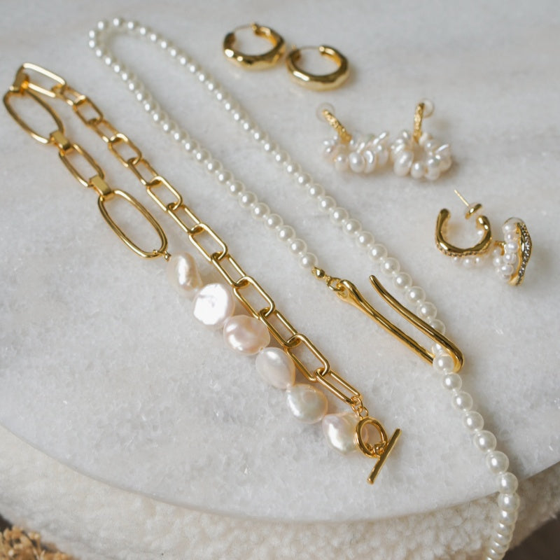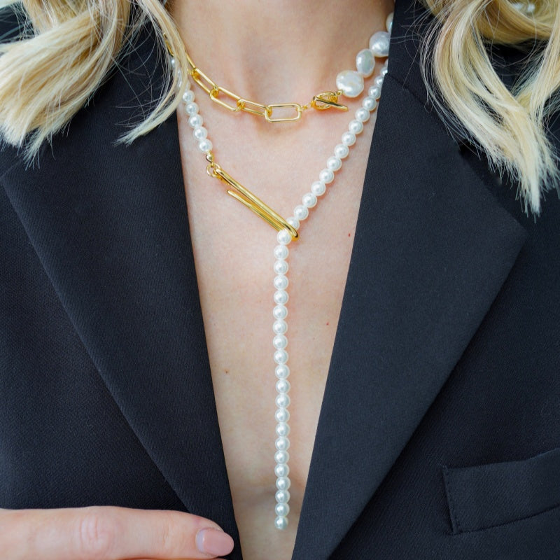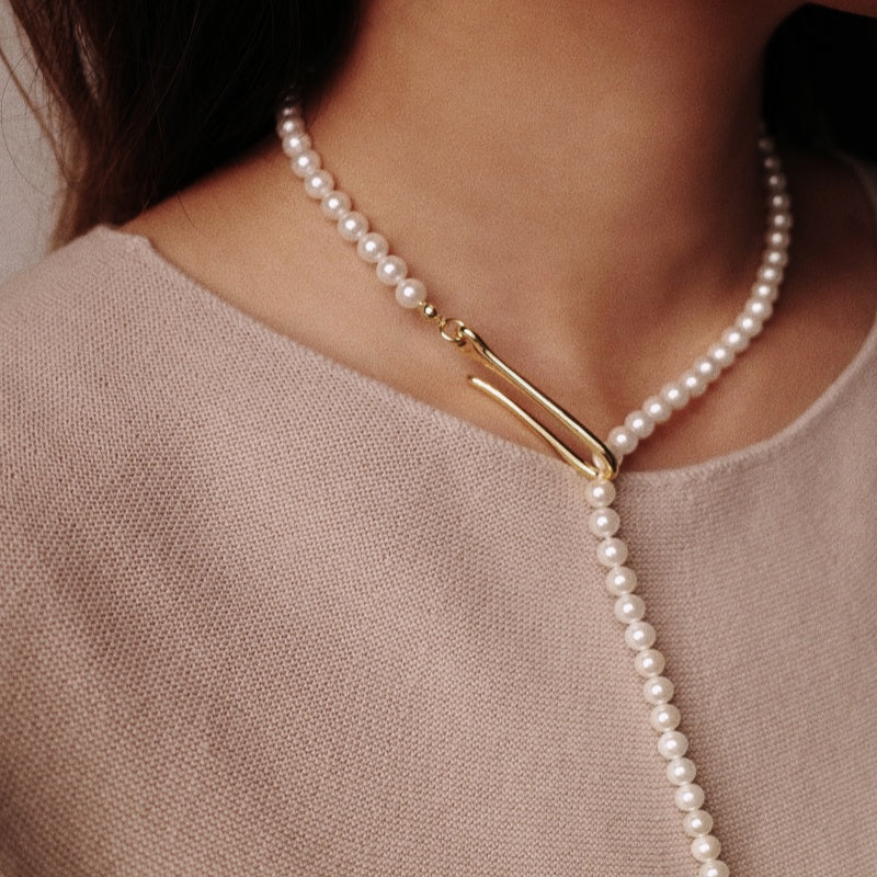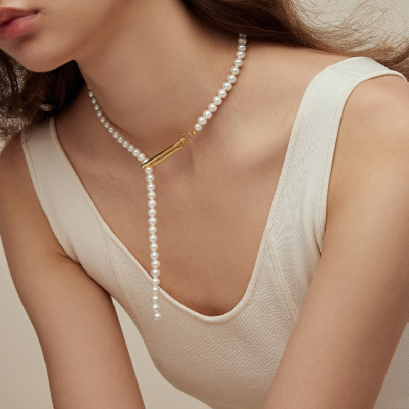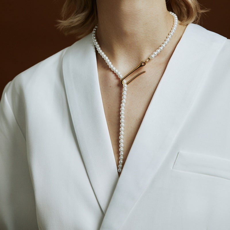 パール ワンライン バックルネックレス