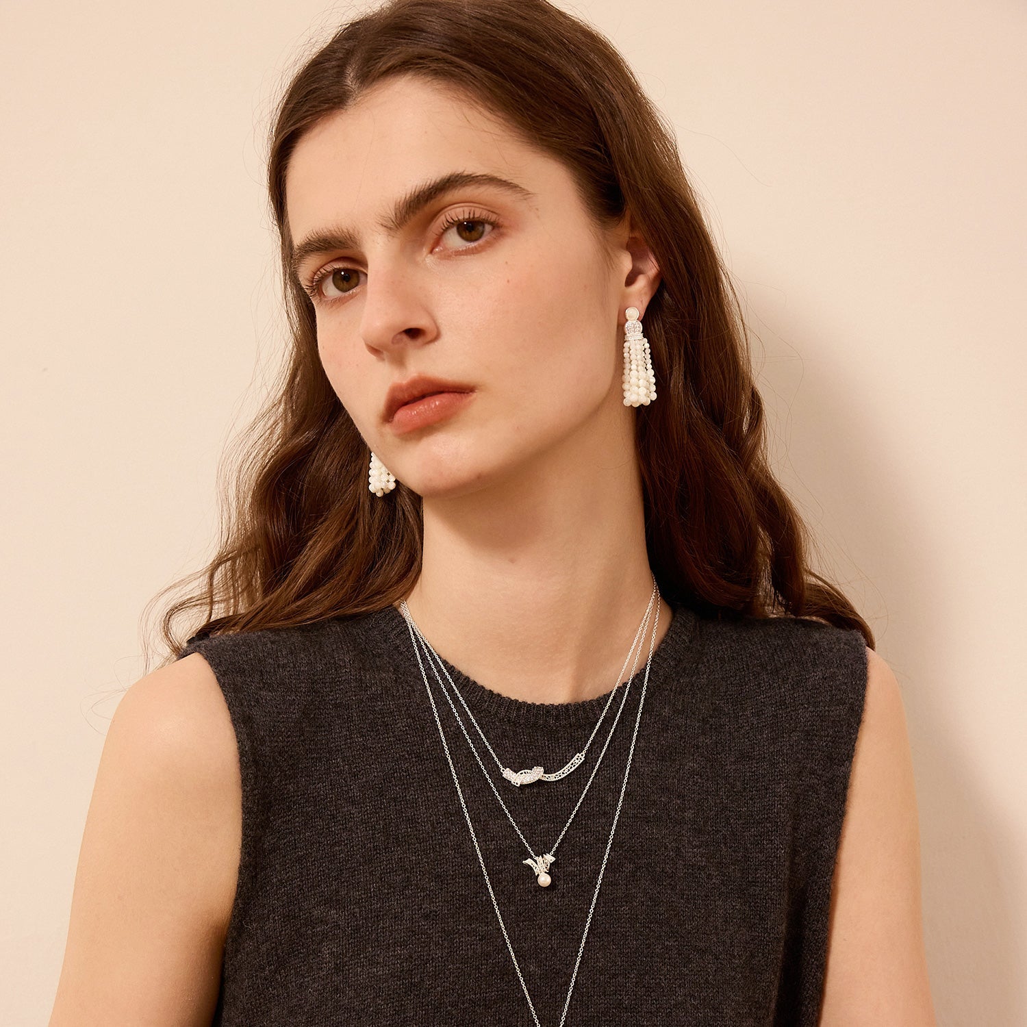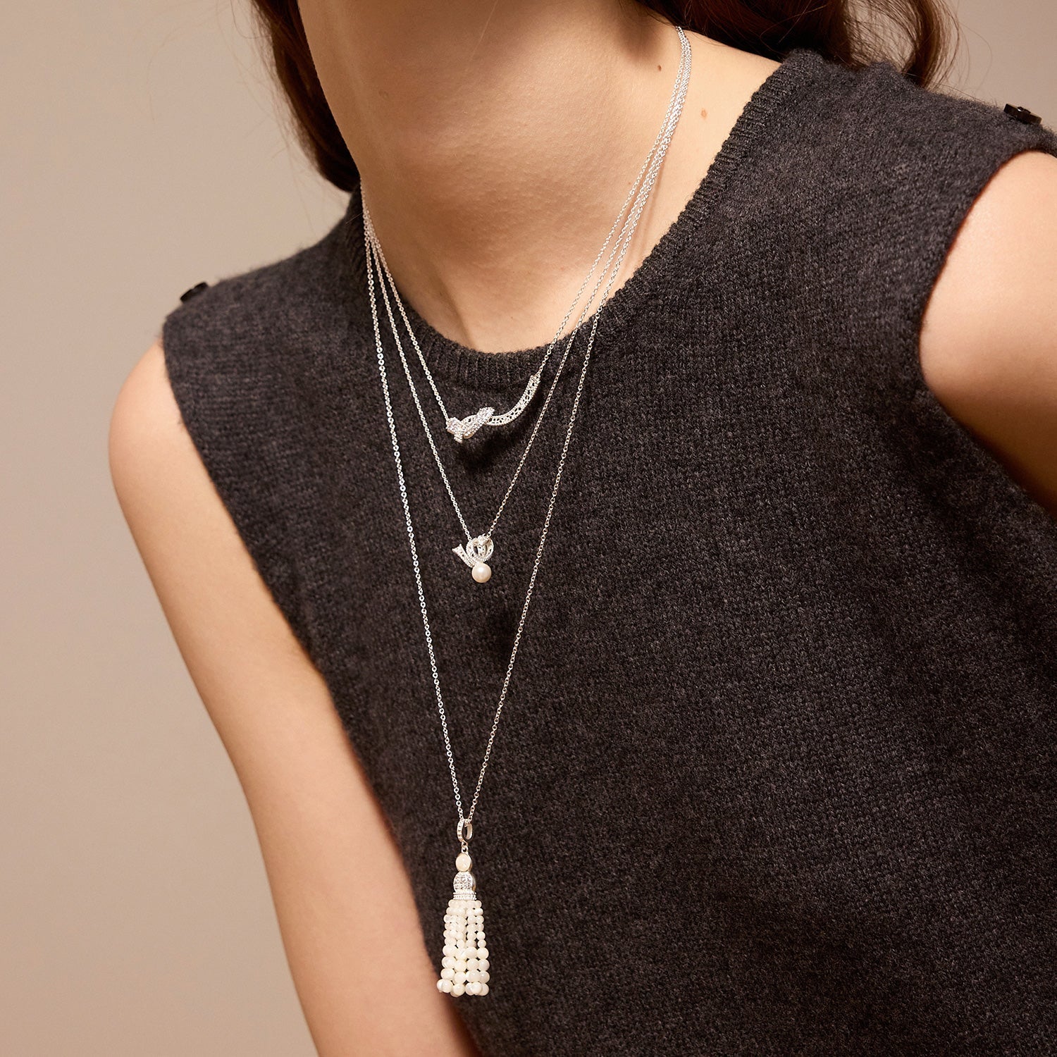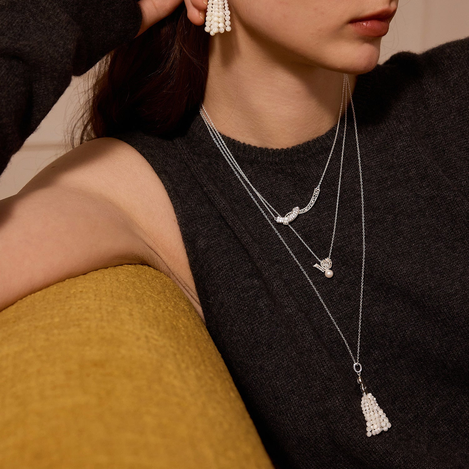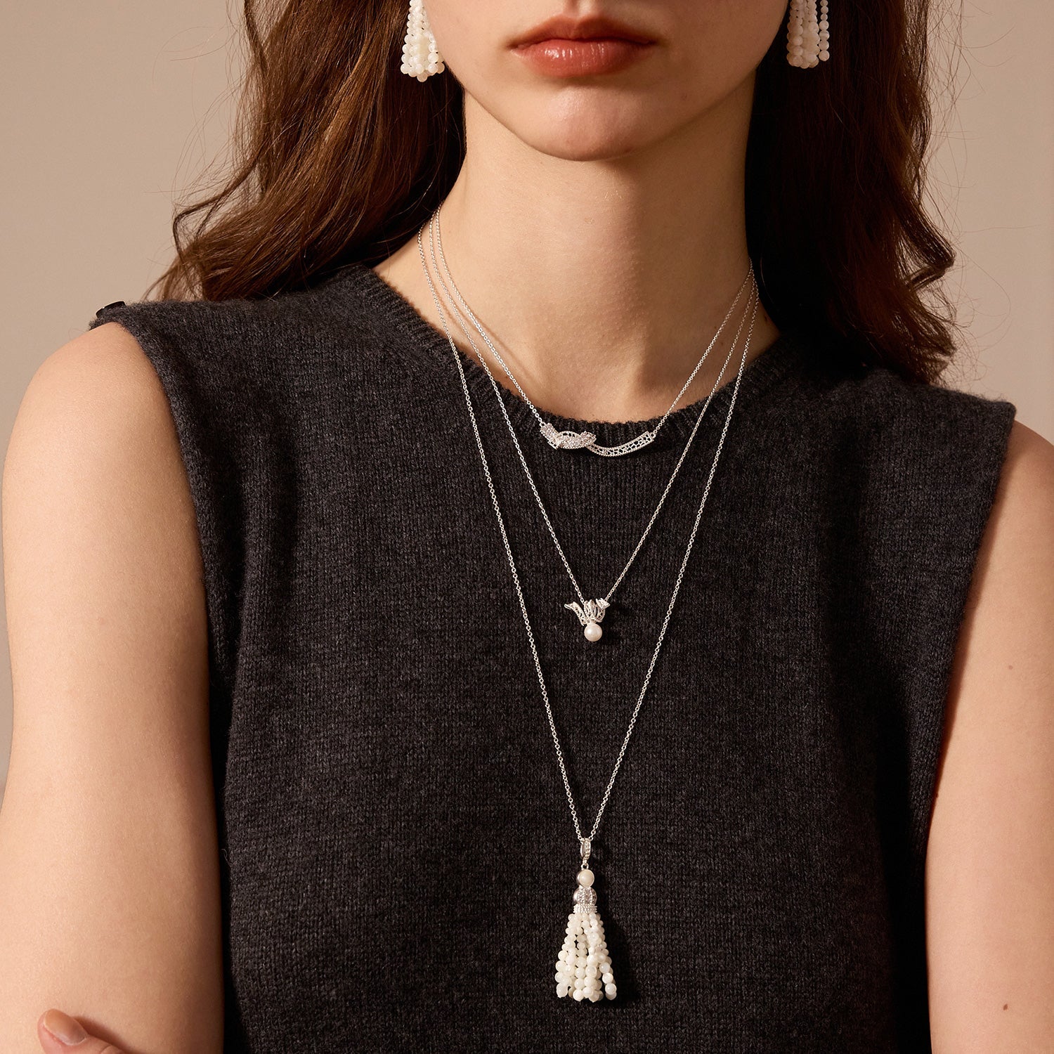パールタッセルペンダント ロングネックレス