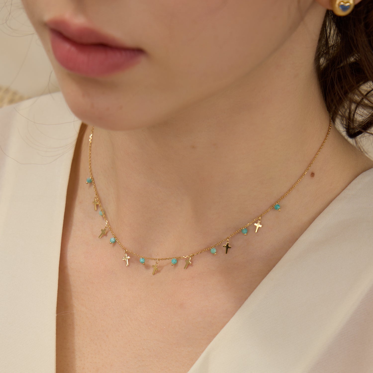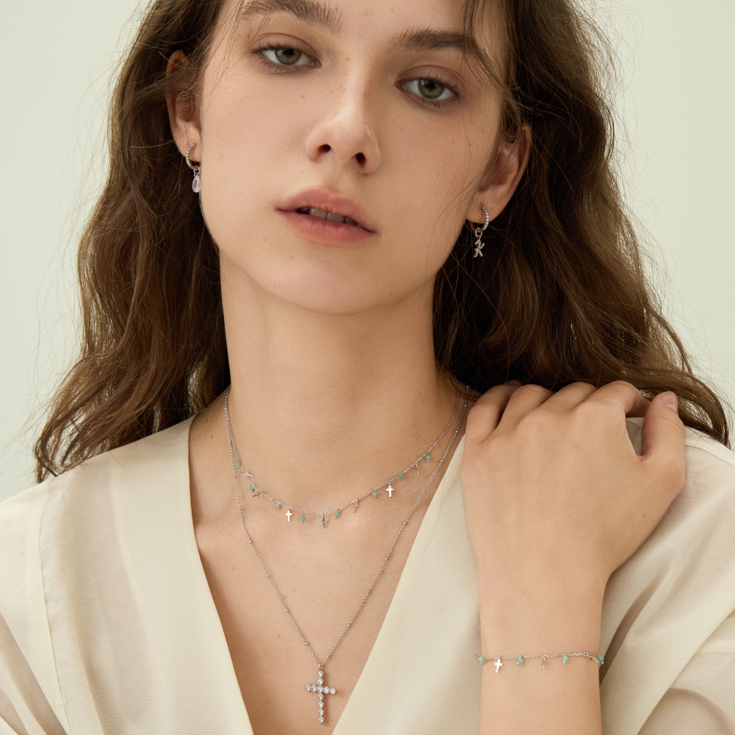 アマゾナイトの美しい宝石が輝くサイクルスターリングです。癒しの力が込められ、18Kゴールドコーティングの繊細なチェーンと組み合わせることで、エレガントなスタイルを引き立てます。お揃いのネックレスと合わせれば、さらに洗練された印象を与えます。アマゾナイトは、バランスを整え、ストレスを軽減する力があるとされ、瞑想やヒーリングにも最適な宝石です。