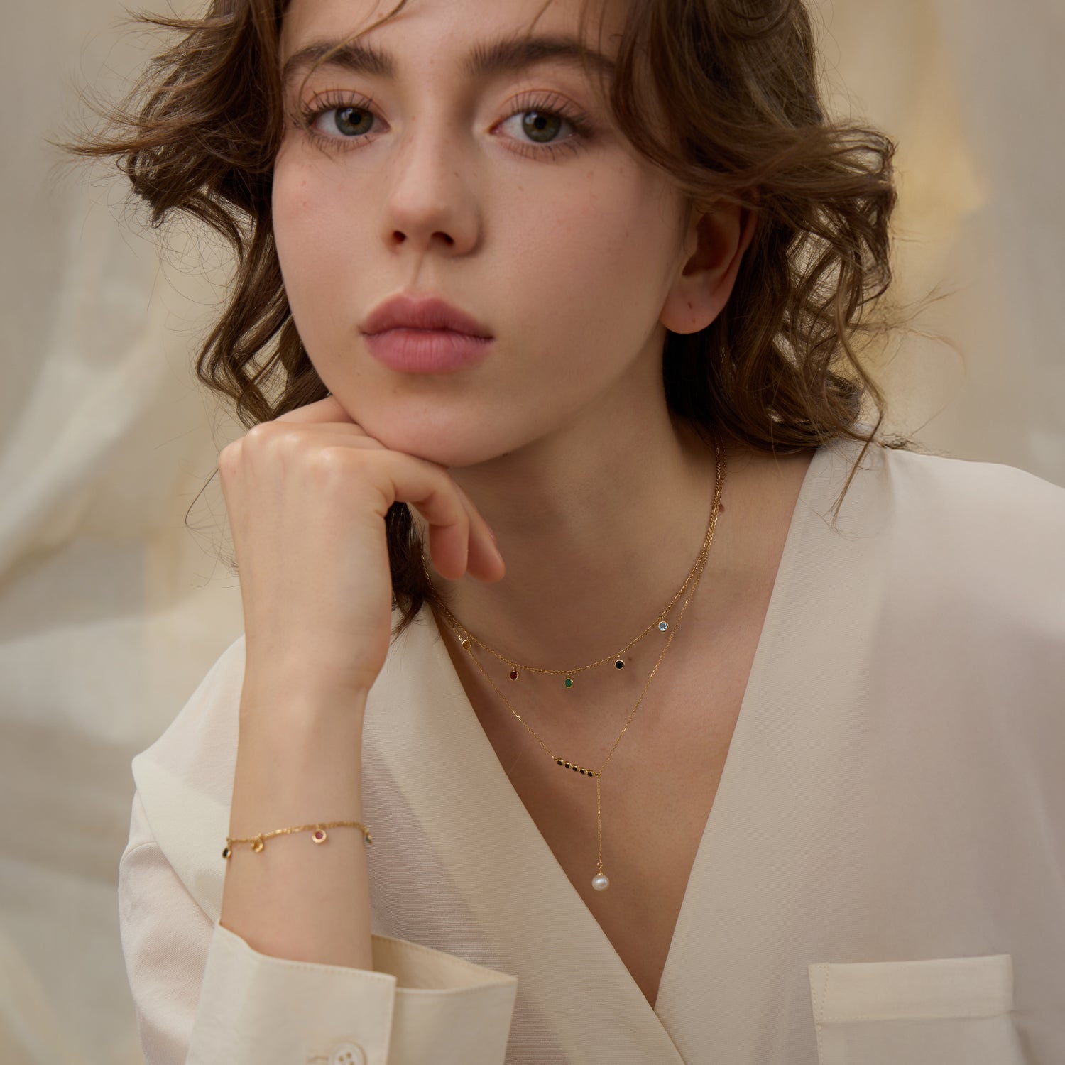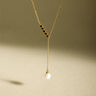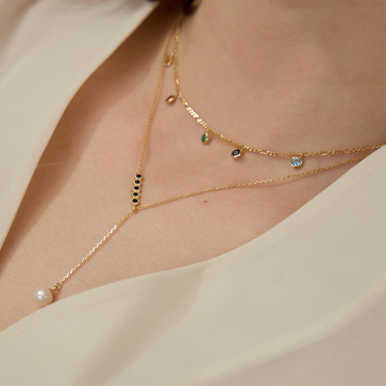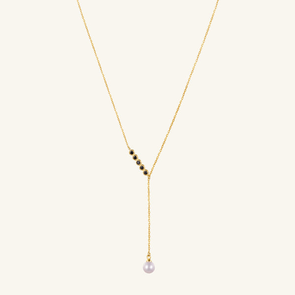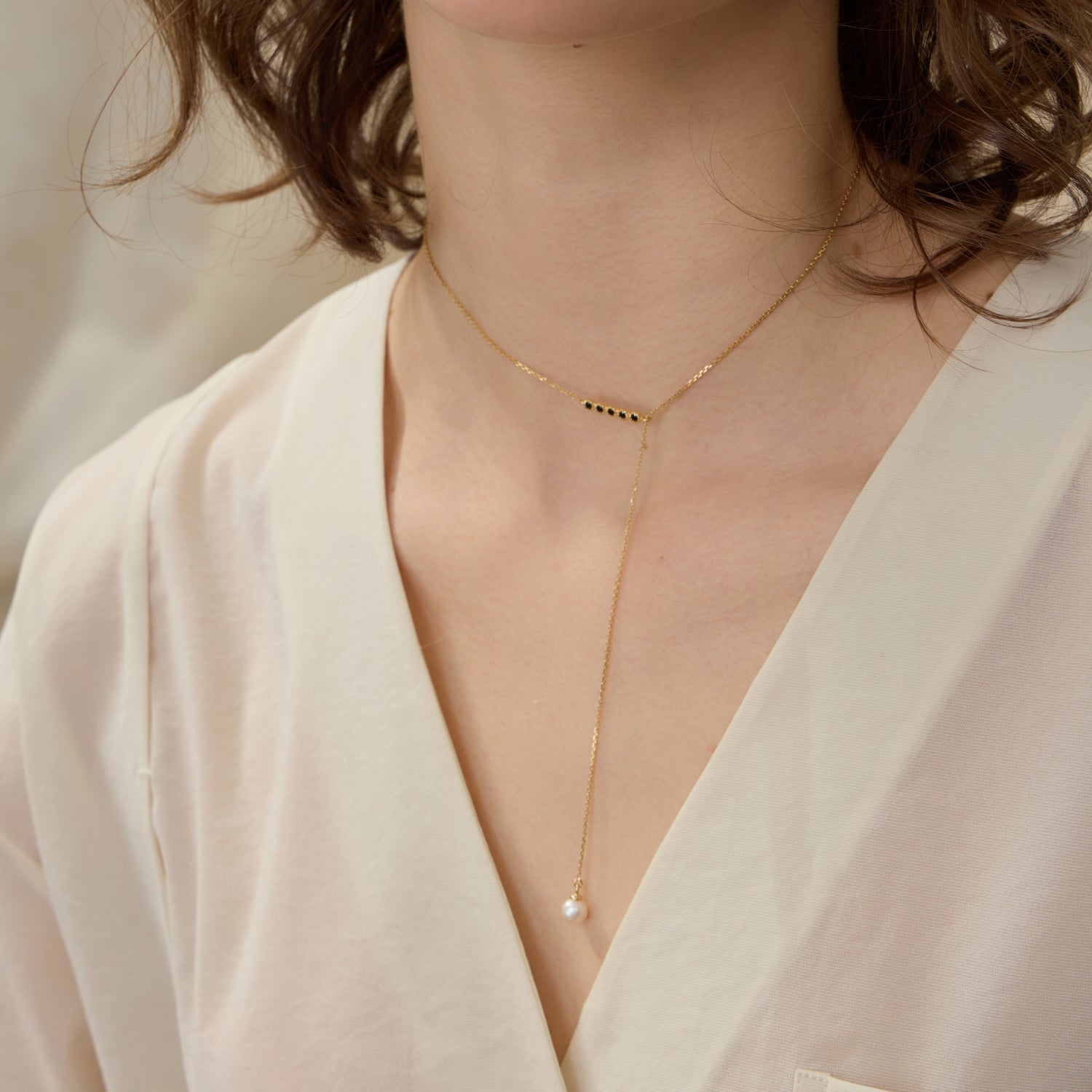 オーガニックデザインと一粒のパールが特徴的なラリアットネックレス。ブラックアゲートの美しい輝きが加わり、シンプルながらも存在感を放つ逸品。時代を超えて、長く愛用できるデザインです。