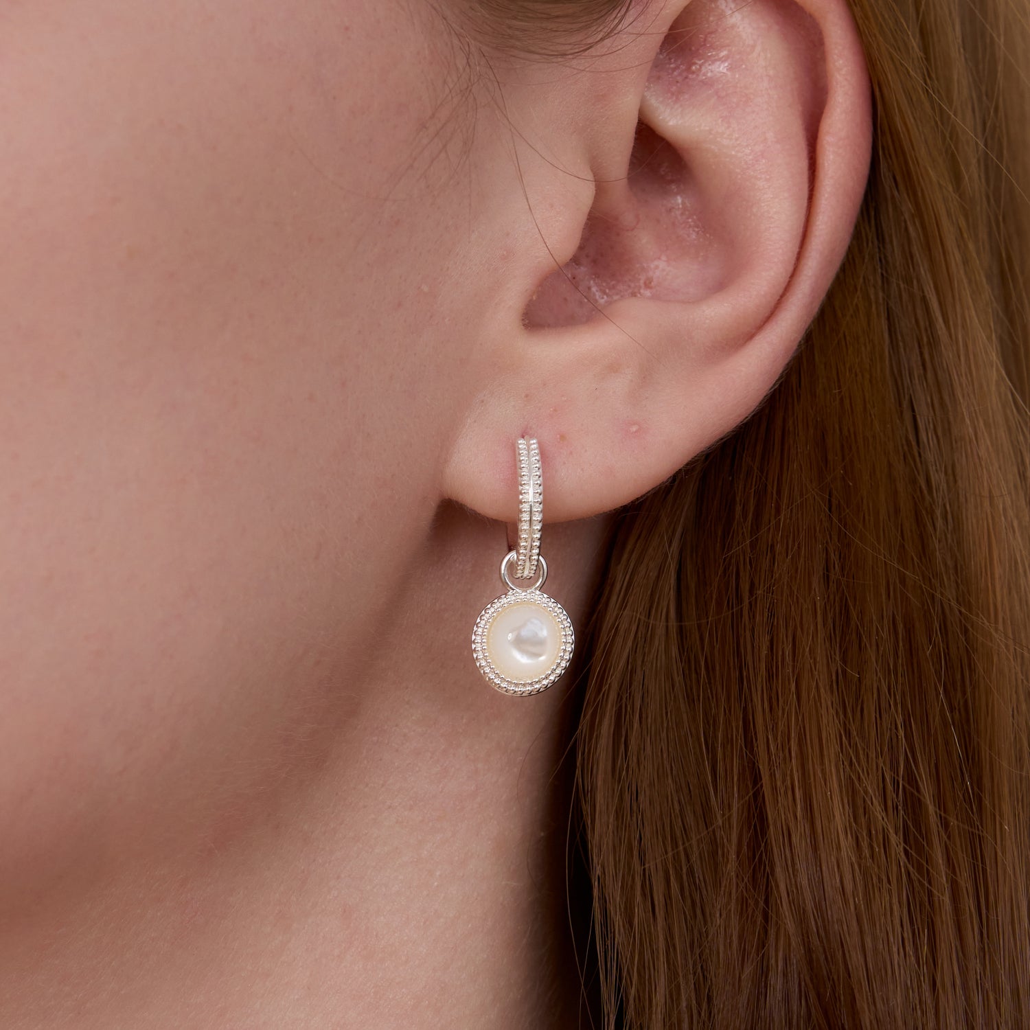 もう少し華やかさを加え、マザーオブパールのイヤージャケットを重ねて、昼も夜もスタイリッシュにコーディネート可能です。