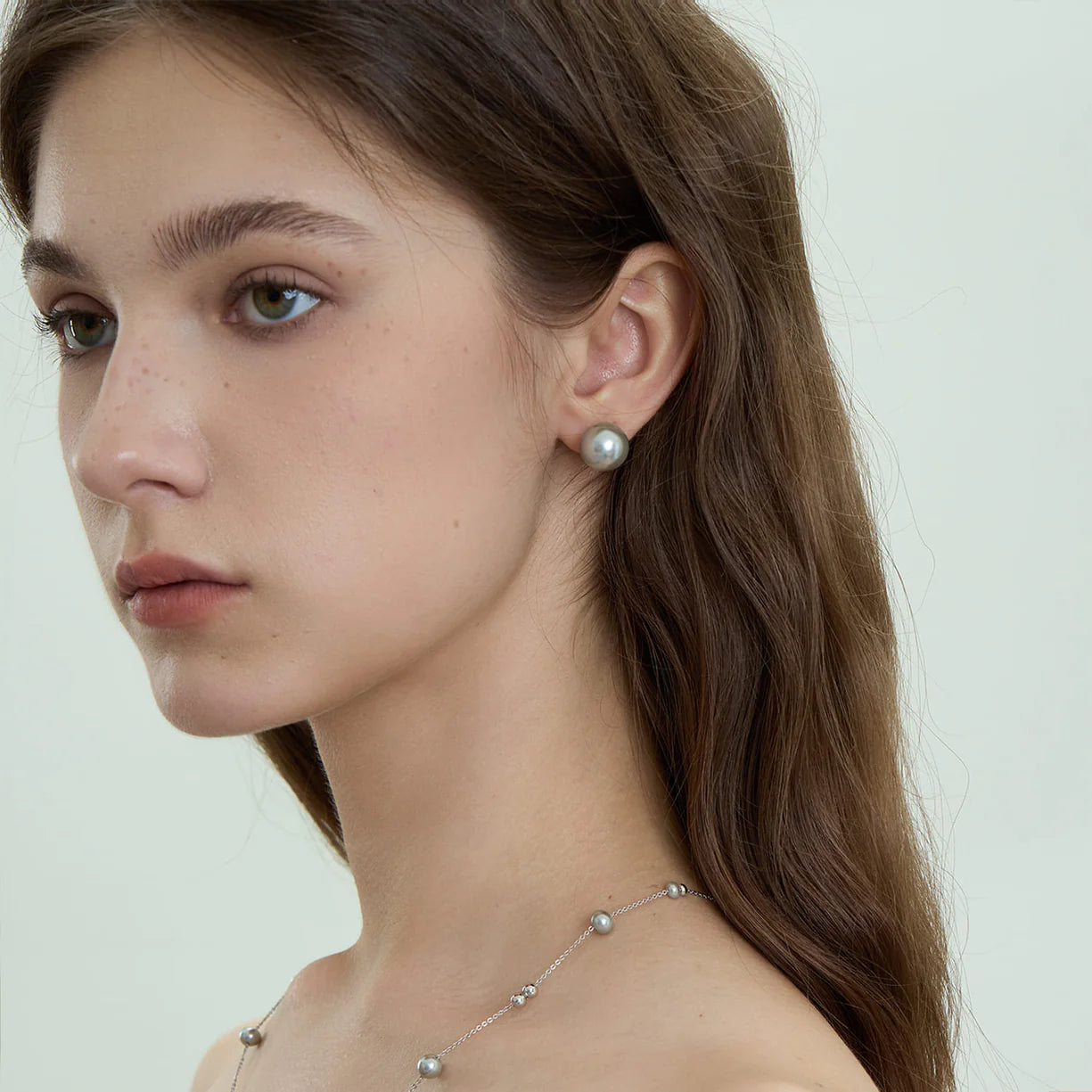 大小異なるビーズを組み合わせたデザインで、片側には繊細に輝くキュービックジルコニアを、もう一方には上品な光沢を放つフェイクパールをあしらっております。