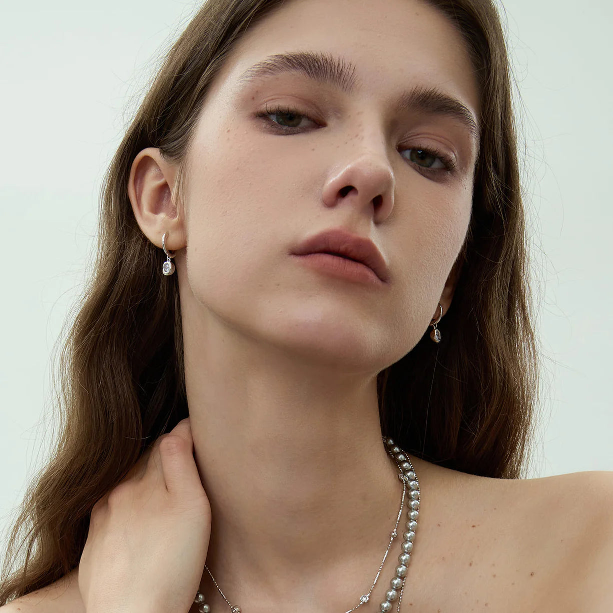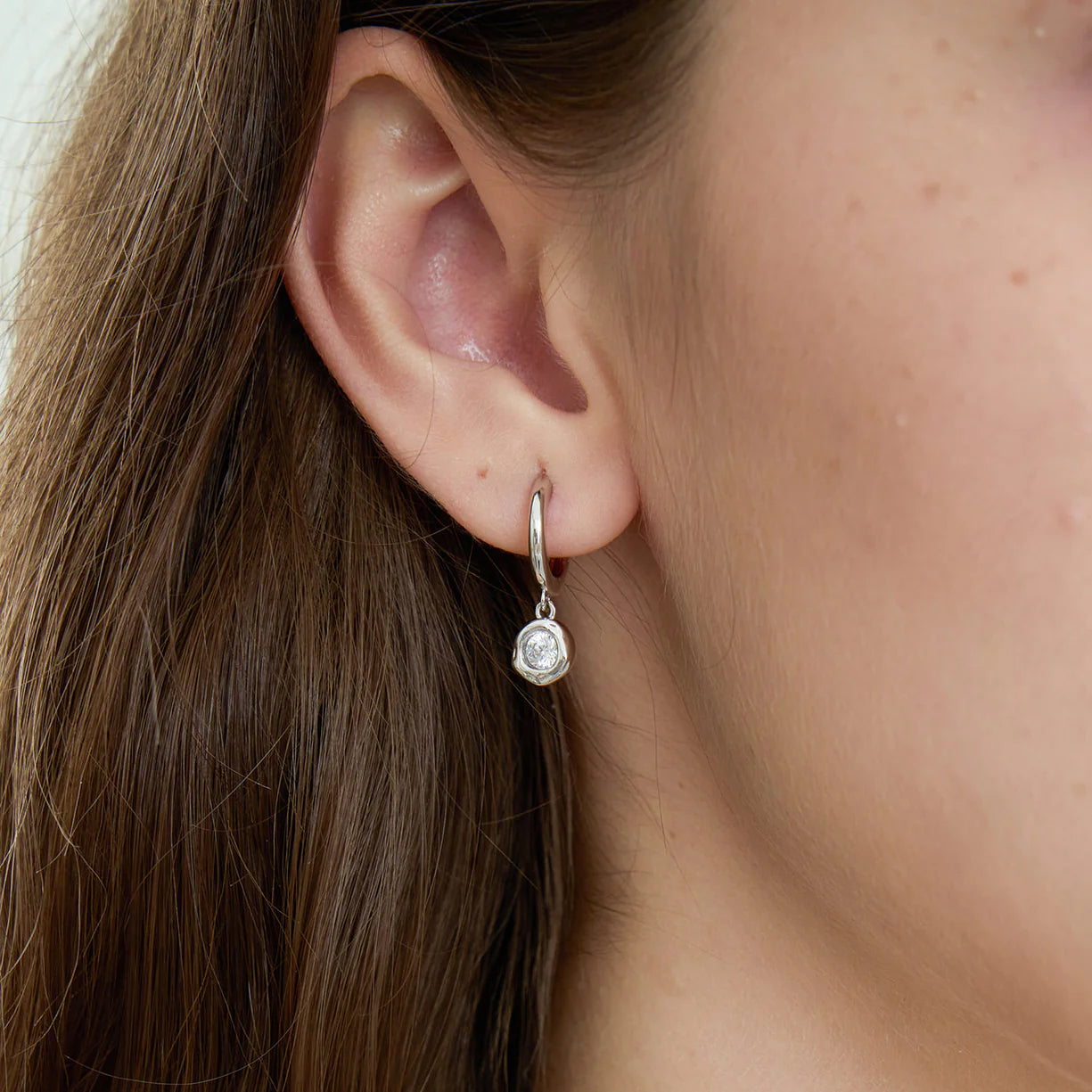 やわらかなカーブが耳元を包み込み、セッティングされたキュービックジルコニアがあらゆる角度から光を受けて繊細にきらめきます。