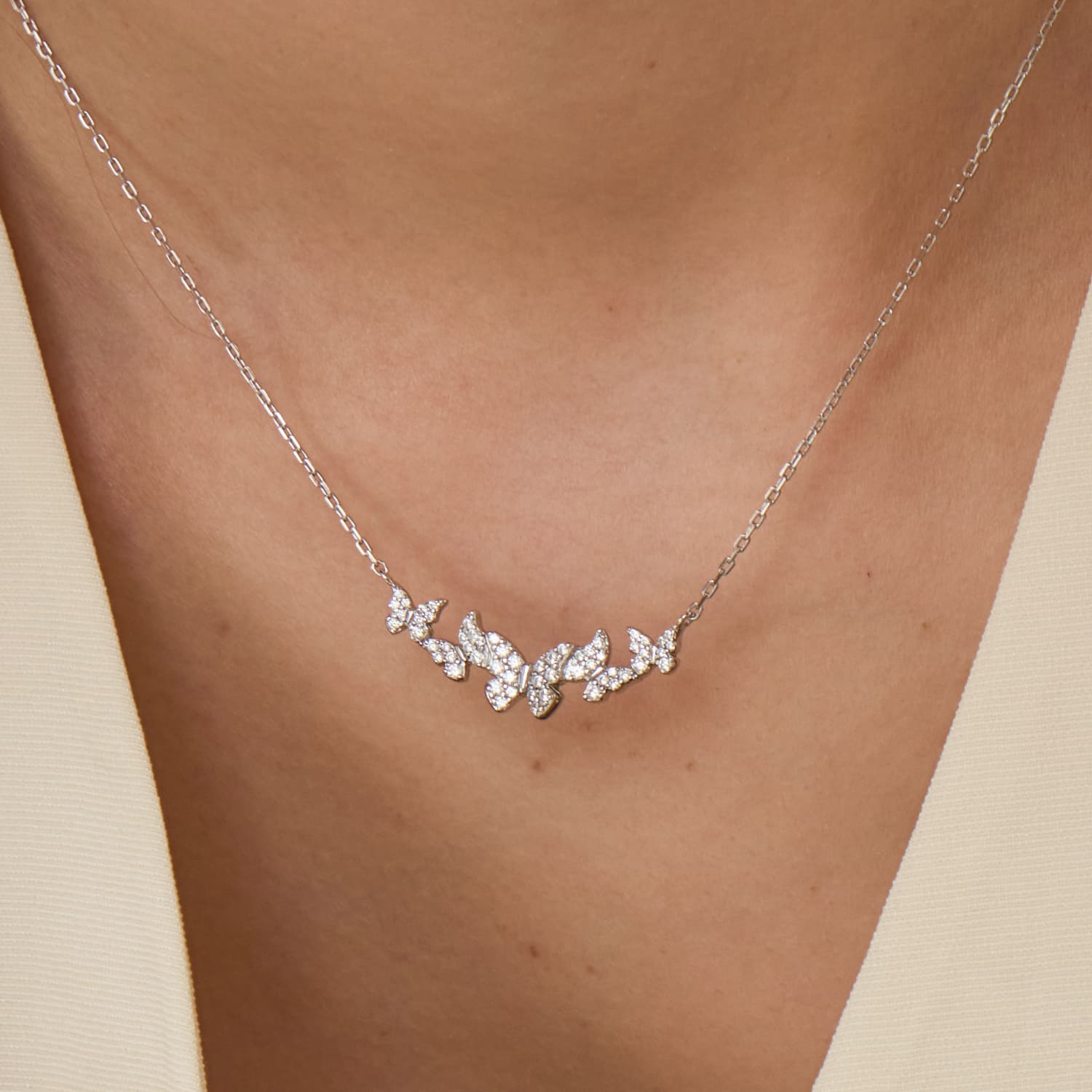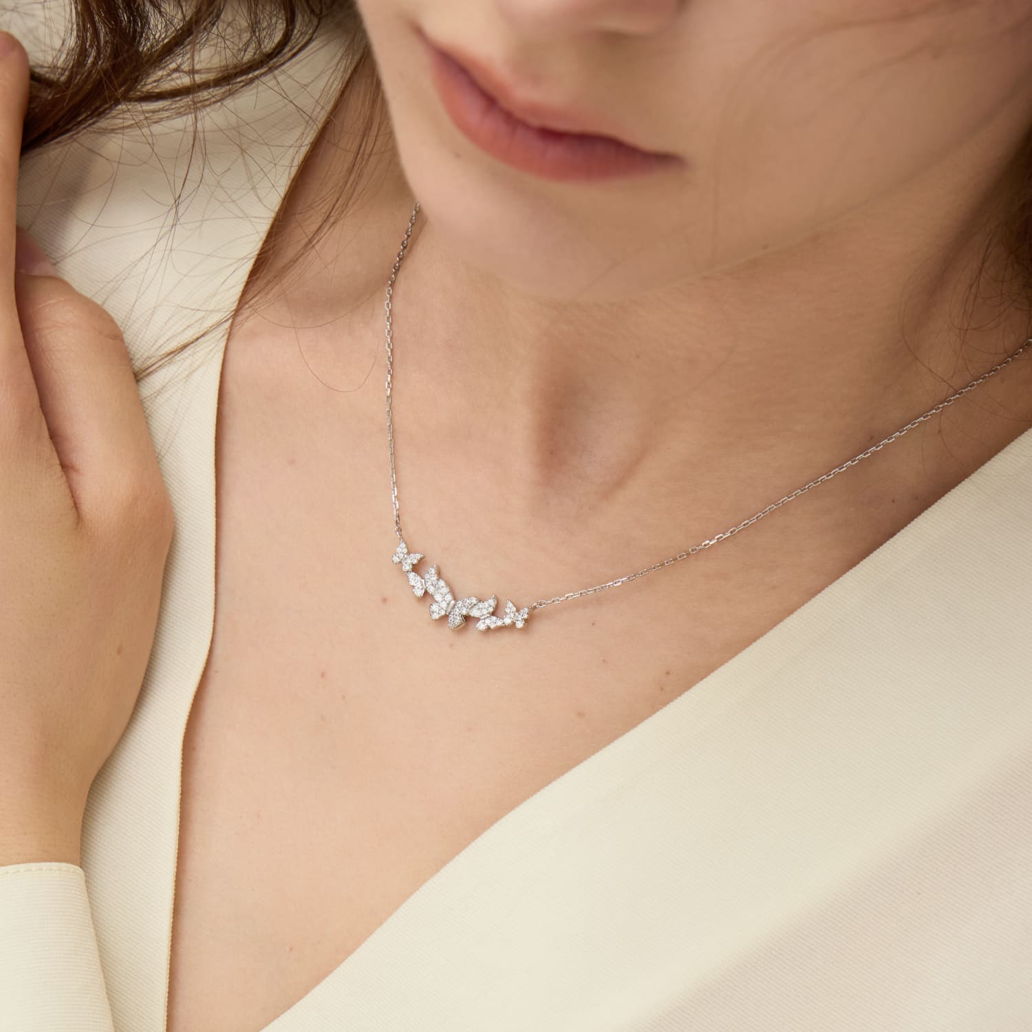 バタフライ クラスター パヴェ ネックレス