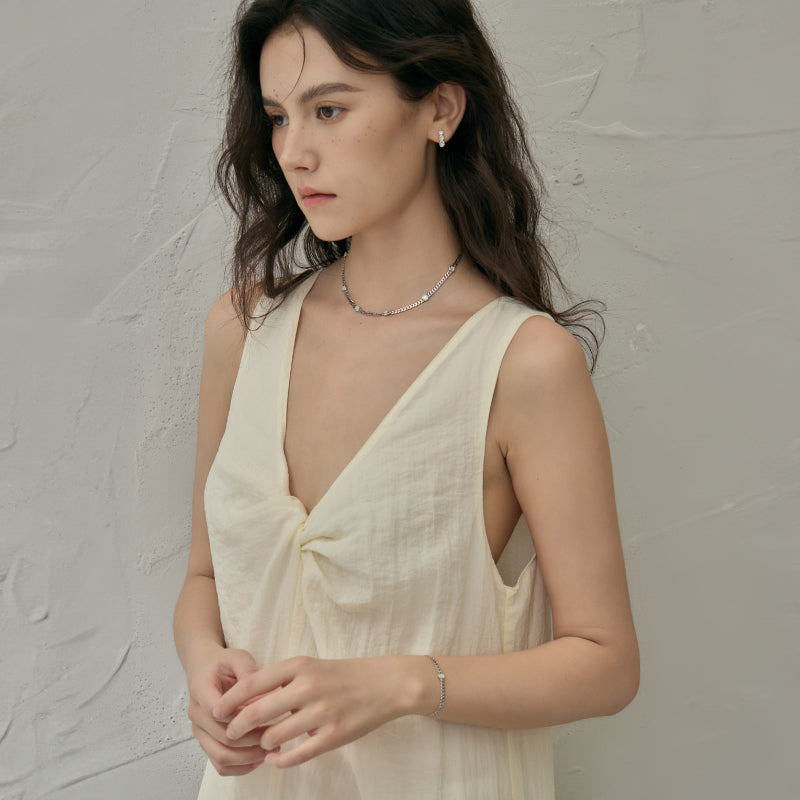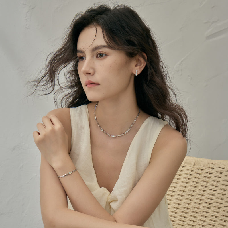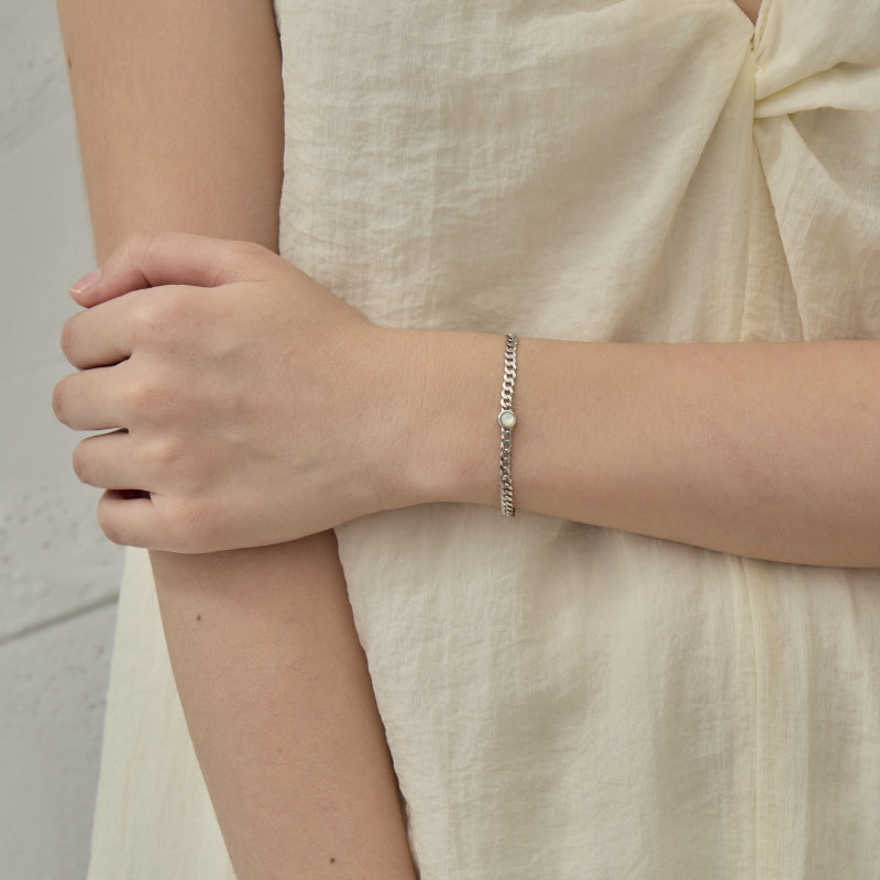 フラットカーブチェーン パールブレスレット