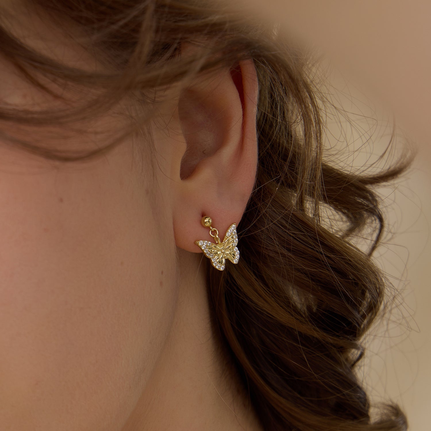 繊細な羽根の優美さ、鮮やかな色彩、そして精緻な模様が、蝶の美しさを引き立てるインスピレーションとなったイヤリング。ゴールドとシルバーの2色展開で、蝶のデザインには煌めくストーンをあしらい、華やかさを添えています。バタフライコレクションの他のアイテムと組み合わせて、さらに魅力的なスタイルをお楽しみいただけます。
