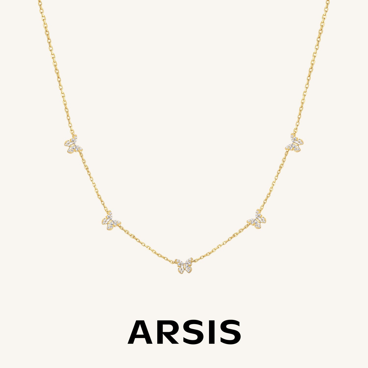 このクインテットのネックレスが、優雅なスタイルに蝶の舞いを添えます。 本作は、職人の手によって1つ1つ丁寧に仕上げられた5羽のバタフライが、輝きを放つクリアCZス トーンで彩られた特別なデザインとなっています。 しなやかで女性的なバタフライのモチーフが、あらゆる装いに華やかなアクセントをもたらします。 バタフライコレクションの他のジュエリーと組み合わせて、より一層の魅力を引き立たせてくだ さい。