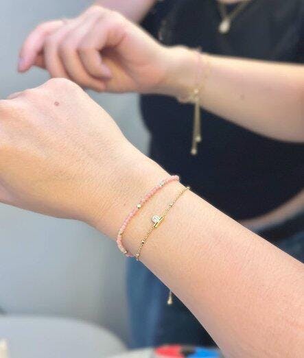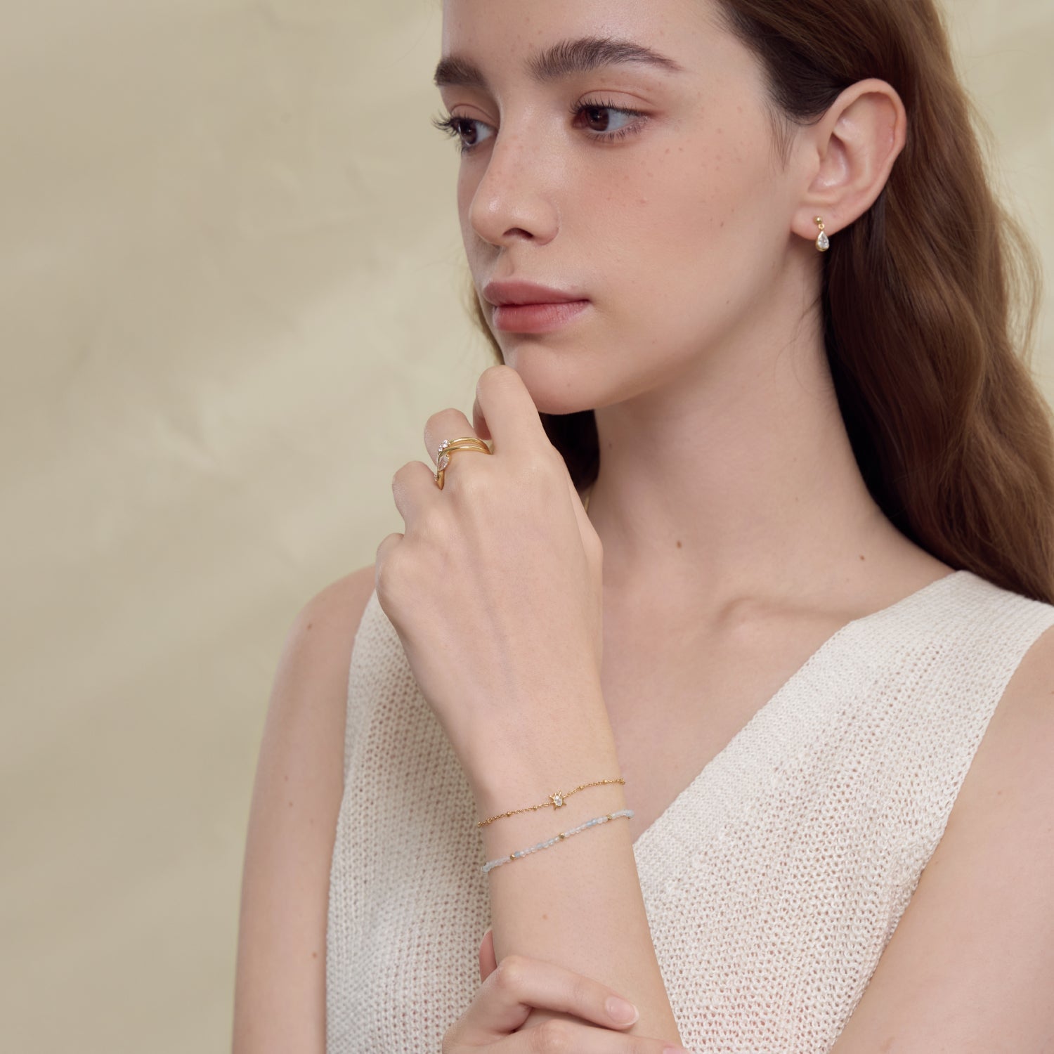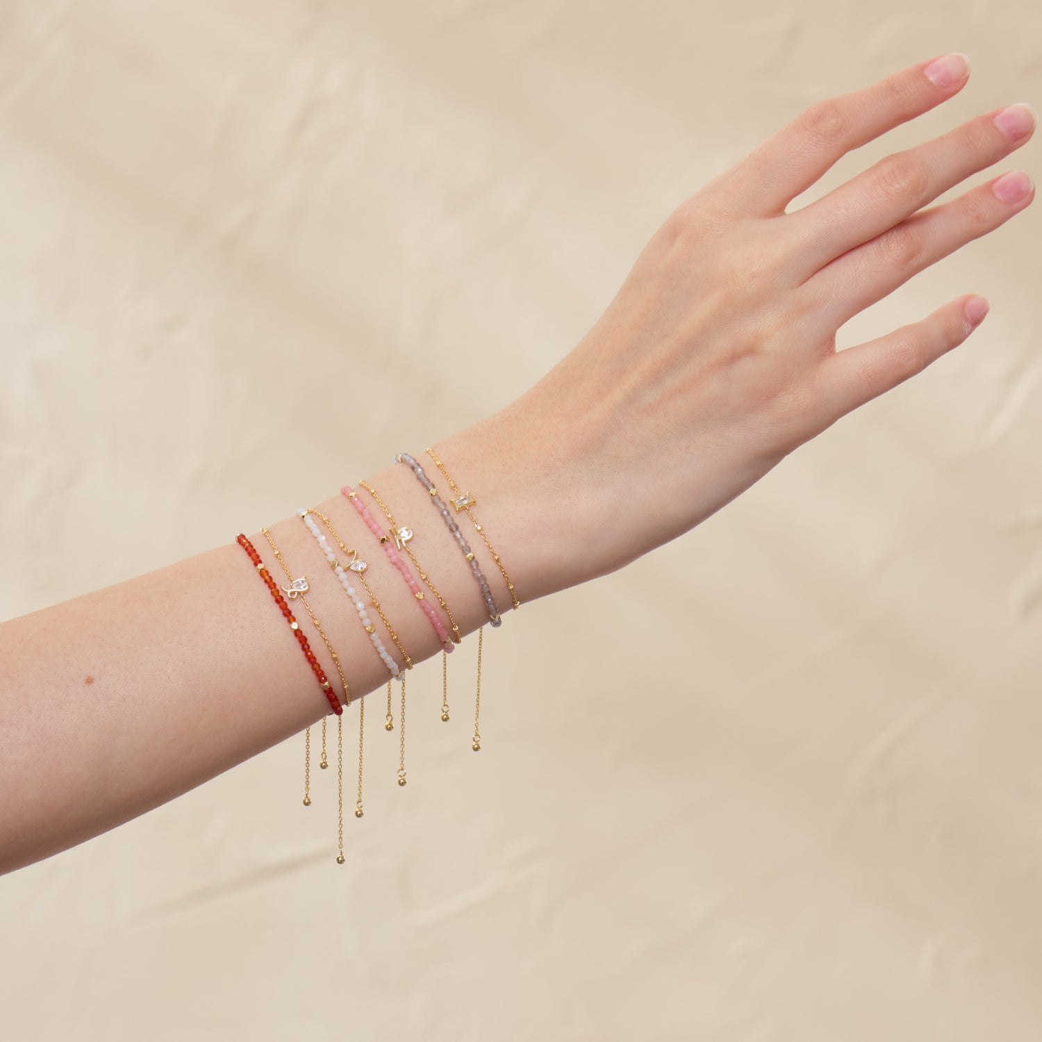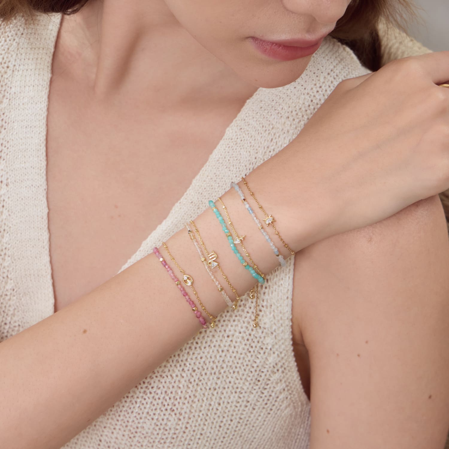 二層構造の星座誕生石ブレスレットをご覧ください。このブレスレットは、あなたの誕生石と星座を美しく際立たせ、意味深いシンボルを融合させています。ブレスレットは2つのパーツに分離可能。ビーズブレスレット単体でも、チェーンブレスレット単体でも、装いに合わせてお選びいただけます。
