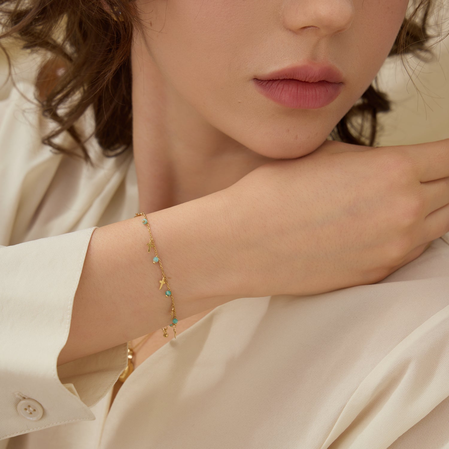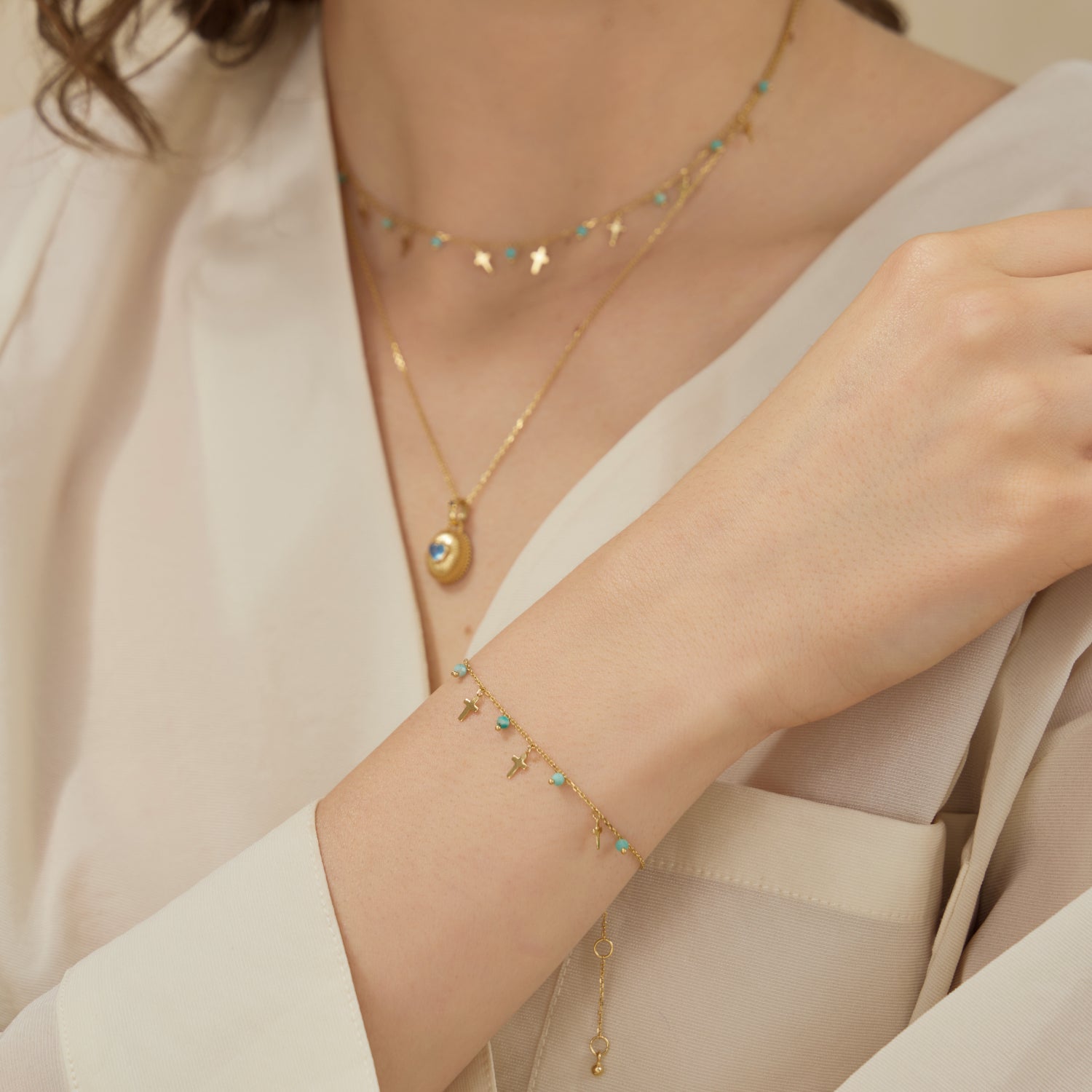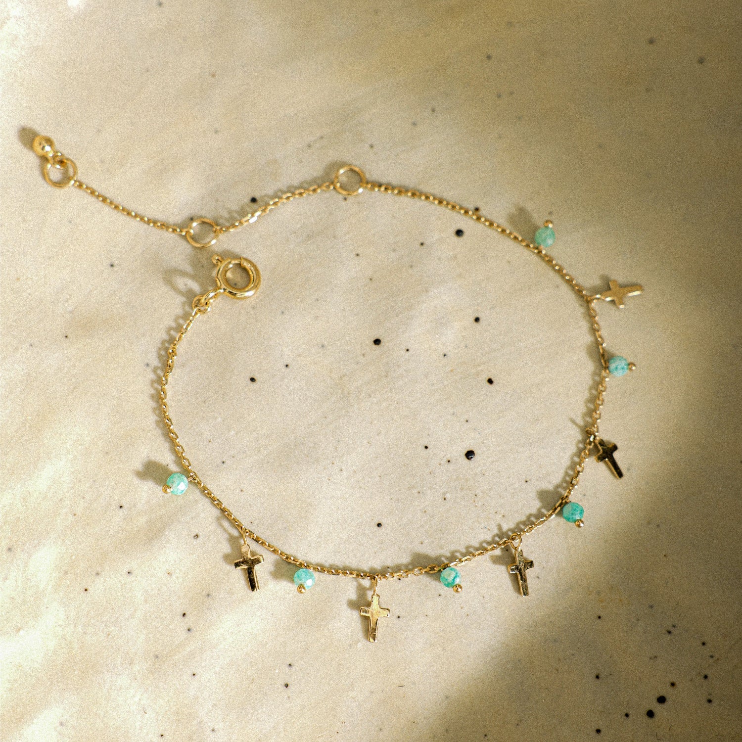 アマゾナイトの美しい宝石が輝くサイクルスターリングです。癒しの力が込められ、18Kゴールドコーティングの繊細なチェーンと組み合わせることで、エレガントなスタイルを引き立てます。お揃いのネックレスと合わせれば、さらに洗練された印象を与えます。アマゾナイトは、バランスを整え、ストレスを軽減する力があるとされ、瞑想やヒーリングにも最適な宝石です。